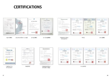 CERTIFICATIONS 사업자 등록증 산업디자인전문회사 신고필증 설계업 등록증 전기공사업등록증 직접생산확인증명서 특허증 디자인등록증 (경관조명기구) 기업부설연구소 공장등록증 직접생산확인증명서 디자인등록증 (디자인)인정서 (전시및행사대행업) 07 08